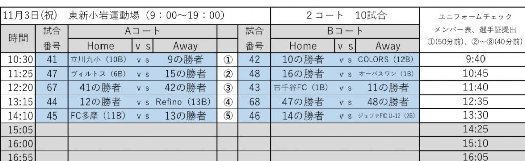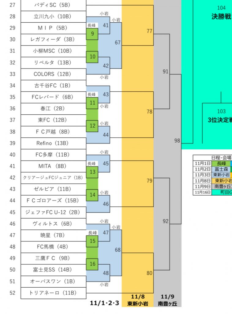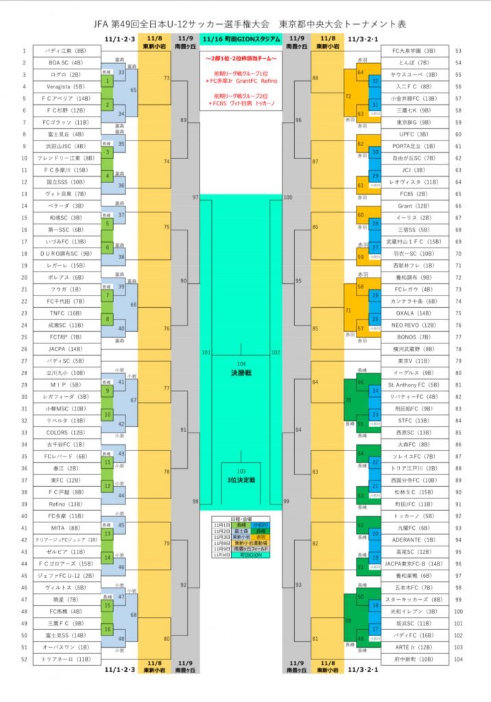 東京都中央大会(104チーム参加)の組合せが決まりました。11月1日〜16日まで、東京都内グラウンドにて開催、決勝は、町田GIONスタジアム